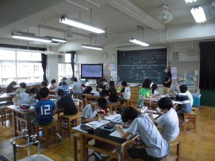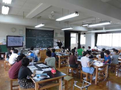 6日(火)の1・2時間目、5年2組は理科の時間でした。講師の先生と「流れる水と土地」の学習が始まりました。町田市を流れる川や東京都を流れる川の名前を思い出すことからスタートしました。川の流れがどのようにできるのかなど、学習の最後にレポートを提出することも理解しました。