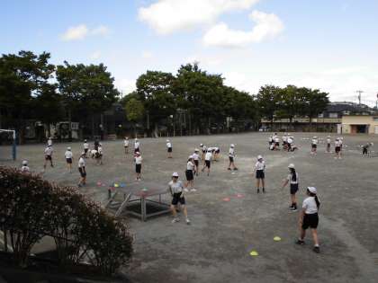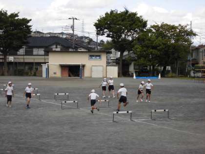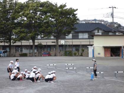 6日(火)の6時間目、6年生は2クラスとも体育の時間でした。今回は、50mハードル走に取り組みました。最初に1組が行い、その間2組はコオーディネーショントレーニングをしました。これで6年生は10月13日の連合体育大会に向けた出場種目を選びます。