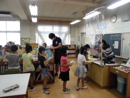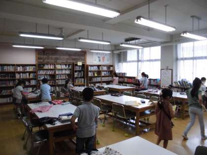 7日(水)の2時間目、2年2組は図書の時間でした。最初に、夏休み前に借りた本の返却をしました。その後は新たな本を探したり、読んだりしました。2学期から図書室に「新聞コーナー」を新設しました。子ども新聞を置き、いつでも読むことができます。