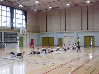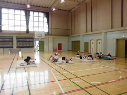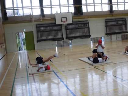 7日(水)の3時間目、3年生は2クラスとも体育の時間でした。1組は体育館で「マット運動」に取り組みました。マット上でゆりかごのように体を揺らしたり、5回揺れたあとに立ち上がったりしました。