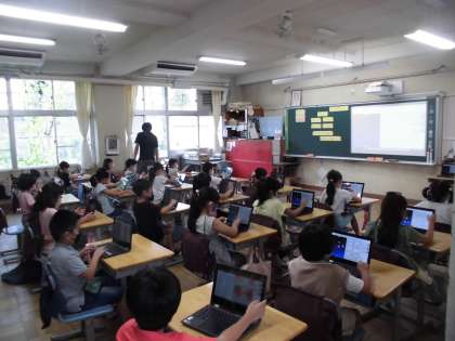 7日(水)の4時間目、2年生、5年生、6年生の授業公開をしました。(5時間目の公開は、1年生、3年生、4年生でした。)2年生は2クラスともタブレット端末を使った「プログラミング」に初めて挑戦しました。5年生は、1組が国語を、2組が外国語の学習でした。6年生は3クラスに分かれての算数でした。