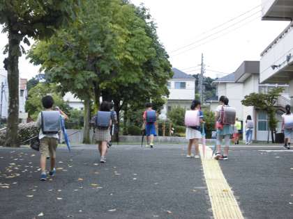 8日(木)の登校の様子です。雨の予報を受けて長い傘を手に登校する子供たちが多くいました。朝夕の涼しさもあり、桜の木から葉が落ち始めました。