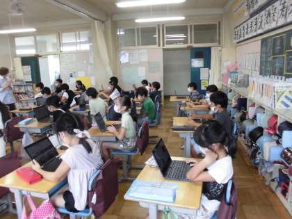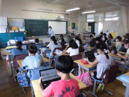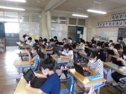 8日(木)の3時間目、4年1組は総合的な学習の時間でした。「高ヶ坂安全マップを作ろう」の第1回目でした。「安全マップとは何だろう」からのスタートです。子供たちはタブレット端末を使いながら、調べ始めました。