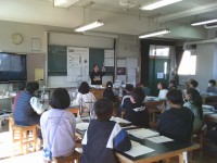 13日(火)の2時間目、1年1組は国語の時間でした。「たのしいな ことばあそび」の学習です。今回は、「ことばあそびの問題をつくろう」をめあてに、3文字の言葉を集め、プリントに書きました。列ごとに自分の考えた3文字の言葉を発表しました。