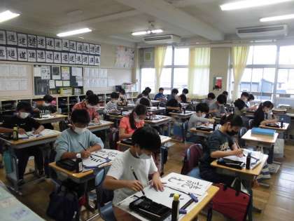 6日(木)の1・2時間目、5年1組は書写の時間でした。今回は、「読む」の二文字を練習しました。漢字とひらがなのバランスを考えながら、丁寧に書きました。