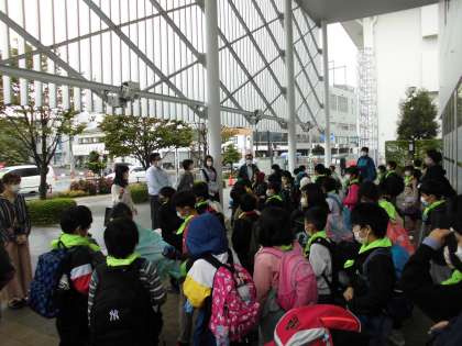 7日(金)午前11時30分、市庁舎見学を終えました。お世話になった担当の方々にお礼の挨拶をして、市庁舎をあとにしました。次の目的地は「JAアグリハウス町田」です。こちらでもクラスごとに説明をしていただきました。2組は最初に町田市内で収穫された野菜を販売するお店の見学をしました。次に、1組と交代して2回のホールで町田市の農業について学びました。子供たちは話を聞きながらメモも書いていました。