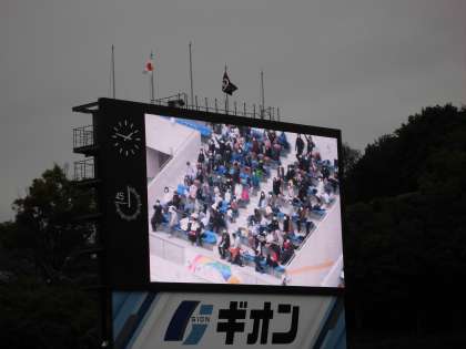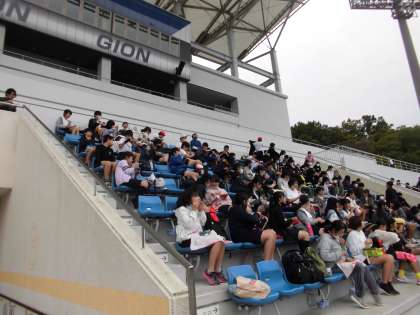 午前の部の競技が終わりに近づき、各校ごとに昼食をとりました。6年生にとって、おうちの方が作ってくださったお弁当をいただく最後の機会です。まだ続いている競技を見ながら、静かに食事をしました。子供たちは喜んで食べていました。保護者の皆様には早朝よりご準備いただきありがとうございました。また、一日を通して、子供たちが数回オーロラビジョンに映りました。そのたびに喜んで手を振っていました。