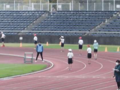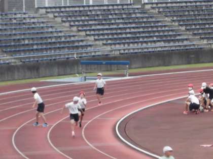 400mリレー走は、女子の部に続いて男子の部が始まりました。男子も第1レースに登場し、2コース(白帽子)を走りました。バトンをつないで力強く走りました。女子も男子もリレーが終わり、座席に戻って来たときには「お疲れ様」と拍手で迎える子供たちの姿がありました。午後3時に閉会式を行い、その後バスに乗って学校に帰ってきました。雨が降っていたので、バスの中で諸連絡を行いました。校内の先生たちが6年生の教室や更衣室を暖かくして、昇降口で出迎えてくれました。2学期がスタートしてからの1ヶ月、ずっと練習に励んできた子供たちです。寒い中でも練習の成果を発揮することができました。よく頑張りました。保護者の皆様にはこれまでの活動に対しご理解とご協力をいただきました。心より感謝申し上げます。