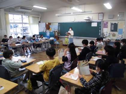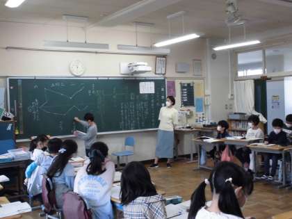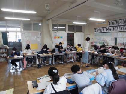 18日(火)の3時間目、4年1組は国語の時間でした。物語「ごんぎつね」の6場面を「悲しい結末からごんと兵十の気持ちを考えよう」をめあてに読みました。子供たちは、ごんを火縄銃で撃った兵十の気持ちを、「ごめんね」「すまない」「時間を戻したい」「後悔」と発表しました。後半は、お話のまとめとして、兵十とごんの心情曲線を考えて作りました。
