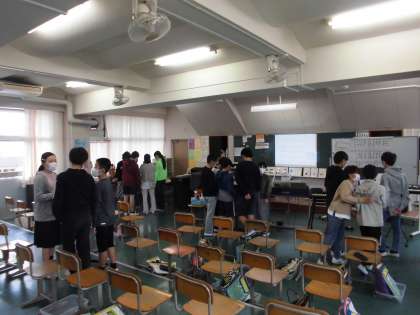 18日(火)の4時間目、6年1組は音楽の時間でした。今月の歌「空がこんなに青いとは」を歌ってから、「ふるさと」の学習に入りました。今回は、グループごとに「大切に歌うところを考えよう」をめあてに話し合ったり、歌ったりしました。アルトグループは2つ、ソプラノグループは3つに分かれて取り組みました。