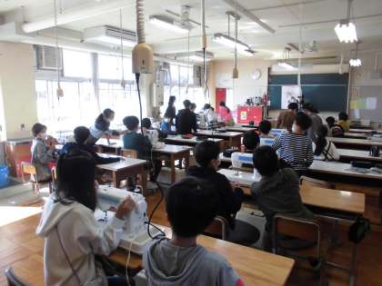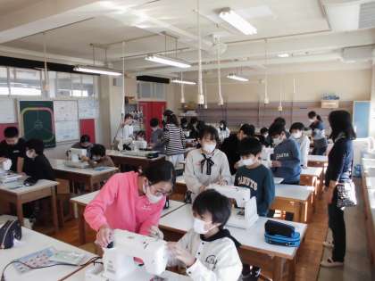 20日(木)の1・2時間目、5年1組は家庭科の時間でした。ミシンの糸かけを順番に練習しました。ボランティアコーディネーターや保護者の皆様がお手伝いに入ってくださいました。ありがとうございました。