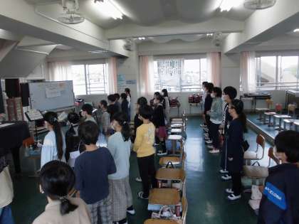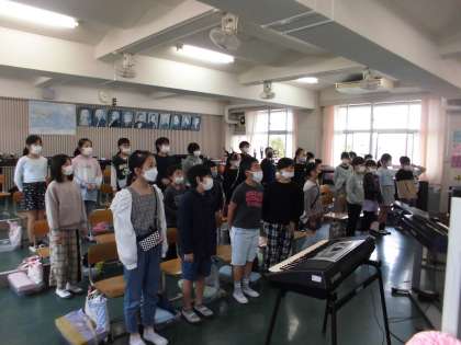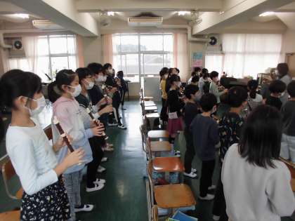 24日(月)の1時間目、4年1組は音楽の時間でした。今月の歌を歌った後、教科書にある「陽気な船長さん」の歌を階名で練習しました。「ドソドソシソソ」で始まる曲を弾むように歌っていました。その後、リコーダーでも吹いて練習しました。