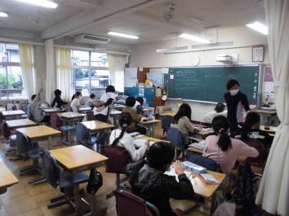 24日(月)の3時間目、4年生は算数の時間でした。今回は、「かけ算の性質」について考え、交換の法則、結合の法則などを使って計算をしました。