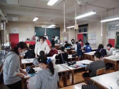 24日(月)の3・4時間目、6年1組は家庭科の時間でした。「手さげ袋」の制作をしています。今回は、ラインテープを付けたり、マチを縫ったりしました。子供たち同士の教え合いもありますが、保護者の皆様のお手伝いにより「やり直し」が減っています。いつもありがとうございます。