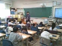 4年1組が復興記念館を見学しています。展示品や写真をじっくり見ています。メモ欄にはたくさんの文字が書かれていました。