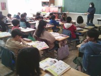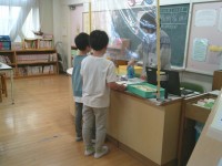 22日(火)の昼休みは掃除なしのロング昼休みにして、たてわり班活動をしました。体育館には、2班と3班がいました。それぞれ6年生がドッジボールのルール説明をしていました。