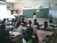 20日(火)1時間目、1年1組は国語の時間でした。「あいうえおで あそぼう」の学習です。声に出して読みながら、リズムがあることや同じ言葉があることに気付きました。また、文中に登場する「まつむし」や「みのむし」の画像を見て、「初めて見た。」「見たことがある。」という手が挙がりました。