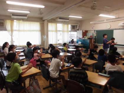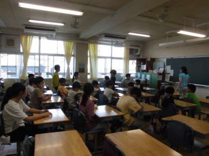 11日(火)給食後、ロング昼休みの時間に「たてわり班活動」をしました。校庭で遊ぶ計画を立てていたグループは、暑さを考慮して教室で遊ぶことに変更しました。子供たちは喜んで遊んでいました。写真は上から、4班(4年1組)、5班(5年1組)、6班(6年1組)です。