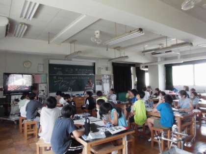 12日(火)3・4時間目、5年2組は理科の時間でした。「花から実へ」の単元です。今回は、受粉をするかしないかで実の付き方に違いがあるのかを、動画を見ながら学習しました。登場したのは、スイカとトウモロコシでした。子供たちは、時間の経過を早送りで見ながら、なるほどと納得していました。