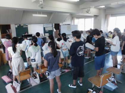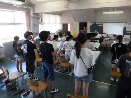 15日(金)1時間目、5年2組は音楽の時間でした。最初に今月の歌「手のひらを太陽に」を歌いました。次に、「さびしいカシの木」の歌の練習をしました。この曲は、12月に行われる連合音楽会で披露する合唱曲です。弾むように歌う今月の歌とは雰囲気が大きく変わりますが、二部合唱としての響きができ始めています。