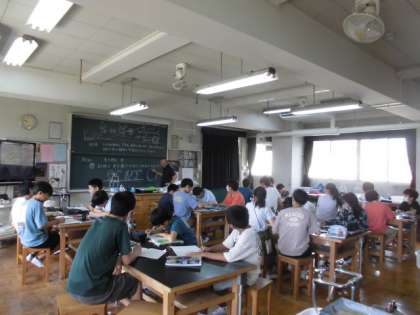 15日(金)1・2時間目、6年1組は理科の時間でした。「生き物と水」の学習です。「生き物と空気」の関係をまとめてから、今回の学習に入りました。生き物は、水を通してどのようにかかわっているのかを考えました。