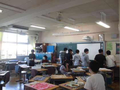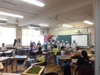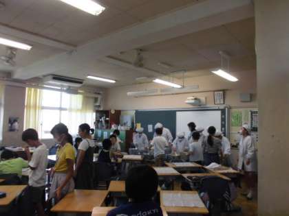 19日(火)給食準備の様子です。写真は上から、5年1組、5年2組、6年1組です。給食当番が手際よく盛り付けていました。