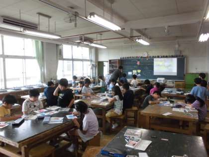 20日(水)1・2時間目、2年1組は図画工作の時間でした。「ゆめのぼうけんものがたり」と題して、ペープサートに取り組みます。今回は、夢の冒険に登場する主人公を決めて、紙の大きさいっぱいに絵を描きました。その後、絵を切り取り、割り箸を付ける作業をしました。