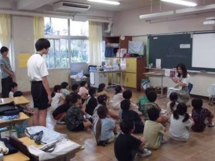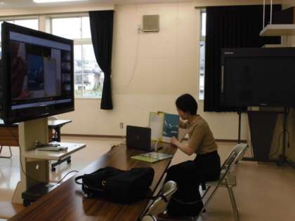 21日(木)の朝は、おはなしたんぽぽの皆さんによる読み聞かせをしていただきました。5年生と6年生はオンラインでの読み聞かせでした。写真は上から、視聴覚室からの読み聞かせの様子、1年1組、1年2組の様子です。1年生の教室には中学生も参加しました。