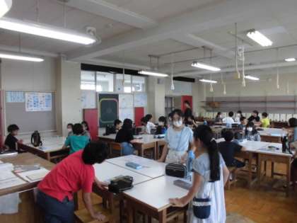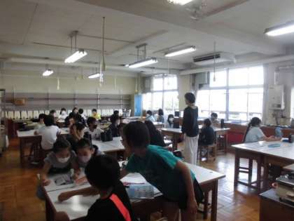 21日(木)1・2時間目、5年2組は家庭科の時間でした。今回は調理実習についての事前学習をしました。次回、「小松菜のおひたし」に取り組むとのことです。机を並べ替えたり、ガスの元栓を確かめたりしました。