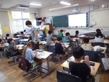 21日(木)4時間目、1年1組は国語の時間でした。今回は、「やくそく」の話に登場した3匹のあおむしに手紙を書きました。「うみにいけると いいね。」「はやくちょうになれると いいね。」など青虫に対する思いが伝わる内容でした。