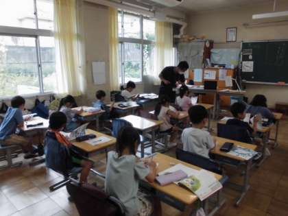 21日(木)4時間目、1年2組は道徳の時間でした。「ぼくのあさがお」という話を読んで、生き物の世話をするときに大事なことは何かを考えました。