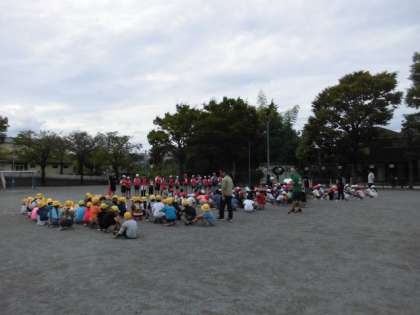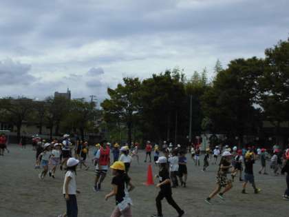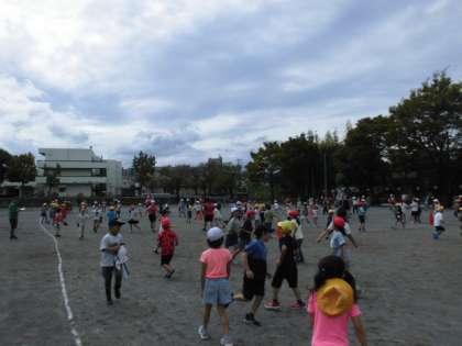 22日(金)昼休みは、1年生から3年生までが校庭で「ケイドロ大会」に参加しました。前期体育委員の5年生と6年生があたためてきた企画です。今回ようやく実現することができました。ビブスを付けた体育委員が子どもたちを追いかけると、タッチされないように逃げていました。体育委員は少しスピードを緩めて走ったり、優しくタッチしたりしてその姿に思いやりを感じました。楽しい一時でした。