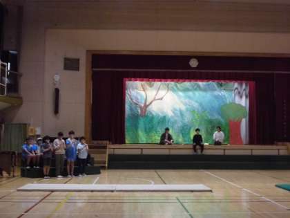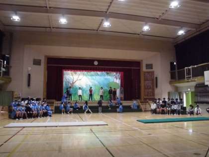 15日(水)午前11時35分から6年生のリハーサルをしました。演目紹介からピアノ伴奏、幕の開け閉め、物の出し入れ等すべてを自分たちで行います。6年生は舞台を見ることなく、客席を向いて臨んでいます。態度も立派です。