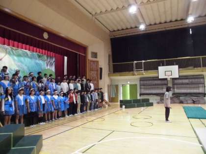 15日(水)お昼過ぎ、学習発表会のリハーサルを終えました。終わりの言葉は6年生が務めます。17日(金)児童鑑賞日は4名が、18日(土)は企画委員会委員長が担当します。今回は立ち位置と出るタイミングを確認しました。