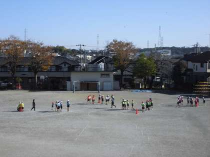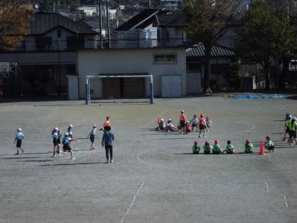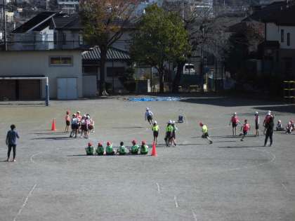 16日(木)1時間目、3年生は体育の時間でした。2クラス合同で「サークルリレー」に取り組んでいました。円の直径は13mで、一人1周を走って次の人にバトンを渡します。曲線を走るためどのように走ればよいかをグループごとに話し合ってから、計測をしました。