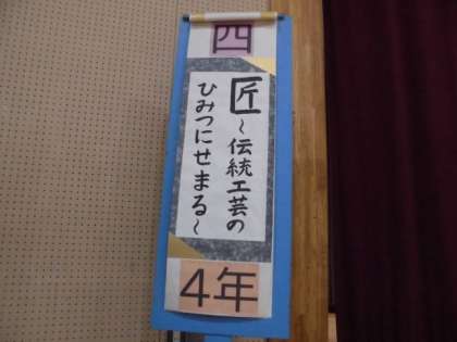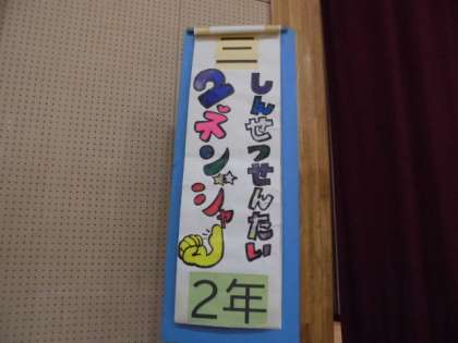 学習発表会では、学年ごとにめくりプログラムを作って活用しています。プログラム順に紹介します。写真は上から2年生、4年生、1年生です。