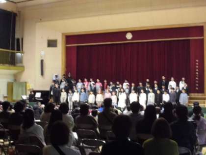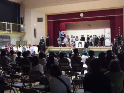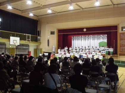 18日(土)学習発表会2日目の様子です。写真は上から5年生、3年生です。5年生の時だけカメラマンが入り、演技の様子をフラッシュ付きで撮影しました。3年生は最後にすてきな蝶になった絵を出しました。蝶の模様は子どもたちが考えて色付けをしました。全員の蝶が揃ったときは見事でした。