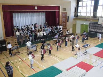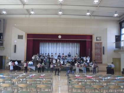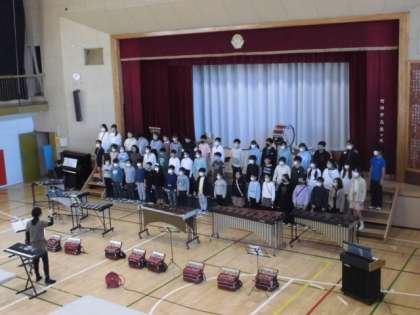 20日(月)5時間目、5年生は体育館で連合音楽会の練習をしました。18日(土)の午後、楽器を音楽室から運び出していました。今回は、合唱での立ち位置、合奏での立ち位置を確認してから練習を始めました。学習発表会の練習とともに連合音楽会の練習もしてきた5年生です。