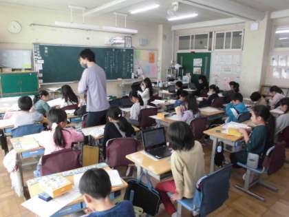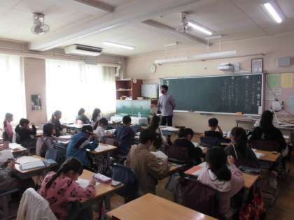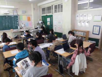 21日(火)3時間目、3年2組は国語の時間でした。「ことわざ・故事成語」の学習です。ことわざかるたを楽しんでから、ことわざの意味を調べ始めました。黒板には「犬も歩けばぼうにあたる」のことわざとその意味が書かれていました。