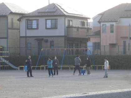27日(月)子どもたちが登校する前、当番の先生方が校庭でライン引きを行いました。運動旬間として「持久走」に取り組むためです。中休みに練習を行います。