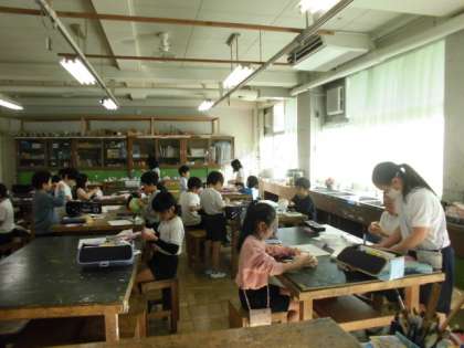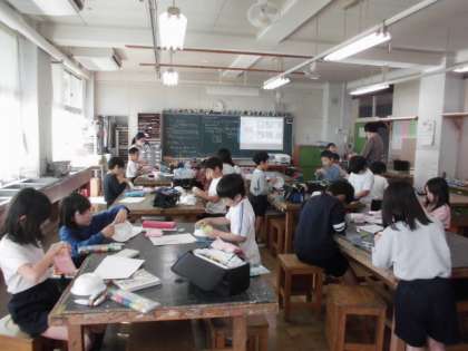 8日(金)3・4時間目、2年2組は図画工作の時間でした。「ハッピーケーキのおくりもの」の学習が始まりました。今回はまず、もらった人が幸せになるケーキを考えました。次に、考えたケーキになるように土台作りをしました。土台は紙粘土です。生クリームの人は白色、抹茶味は黄緑色、いちご味は赤色と白色を混ぜてピンク色にして作っていました。