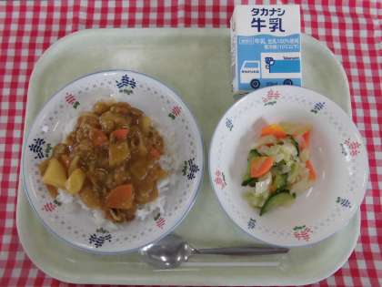 11日(月)の献立は、根菜カレーライス、イタリアンサラダ、牛乳です。
