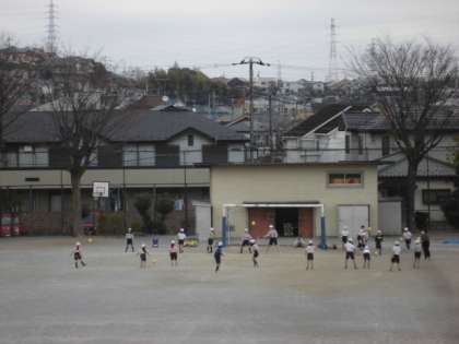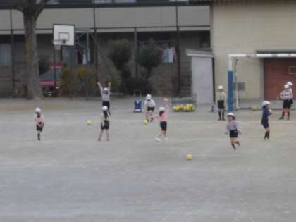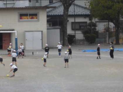 11日(月)3時間目、2年2組は体育の時間でした。準備運動をしてから、ボール投げゲームをしました。ゲームに入る前に、ボールを相手に投げる、それを受け取る練習をしました。相手がキャッチできるようにするには、どこへ投げたらよいかを考えていました。