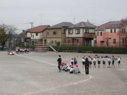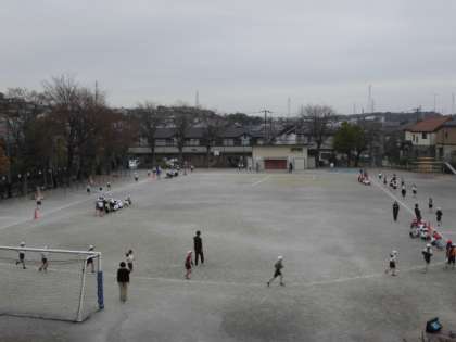 11日(月)6時間目、3年生と4年生は持久走大会のリハーサルを行いました。3年生と4年生とでペアを作り、互いの周数を数えます。最初に3年生が走りました。遊具側が1組、鉄棒側が2組です。7分間の走りに挑戦しました。