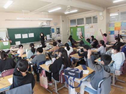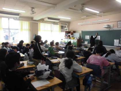 13日(水)5時間目、5年1組は総合的な学習の時間でした。自分たちが育てた「高ヶ坂米」の脱穀ともみすりを終えた振り返りをしました。そして、いよいよ収穫量を量りました。目盛りの針は520gをさしていました。何人分のご飯が炊けるのかは各自で調べることになりました。