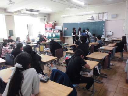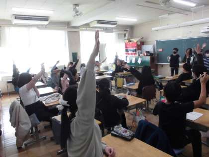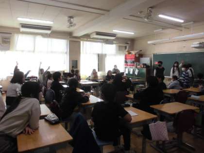 13日(水)5時間目、5年2組は学級活動の時間でした。今回は「お楽しみ会の計画を立てよう」と題して学級会を開きました。司会者、黒板書記が前に出て、みんなの意見をまとめていました。