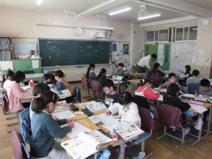 14日(木)4時間目、3年1組は社会の時間でした。自分たちが考えた学習問題「全焼しないためにどのような工夫をしているのか」をまとめました。学校、消防署、地域、119番の4項目に分けてまとめました。