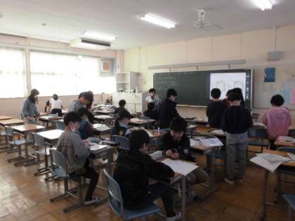 14日(木)4時間目、4年生は算数の時間でした。「変わり方調べ」の学習です。途中、教科書に付いている時計のような円を2枚切り抜く作業をしました。