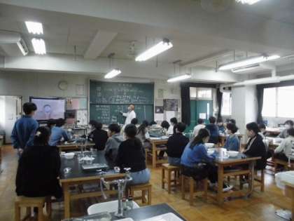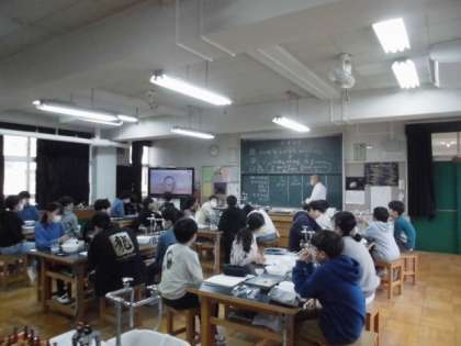 15日(金)1・2時間目、6年1組は理科の時間でした。「3つの粉末の正体を明らかにしよう」がめあてです。容器に入った砂糖、片栗粉、塩を各班で考えた方法で実験しました。写真は実験が終わって、結果をまとめている様子です。