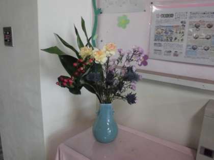 18日(月)、職員玄関に飾られている生け花が新しくなりました。2学期末まできれいに咲いていてほしいです。